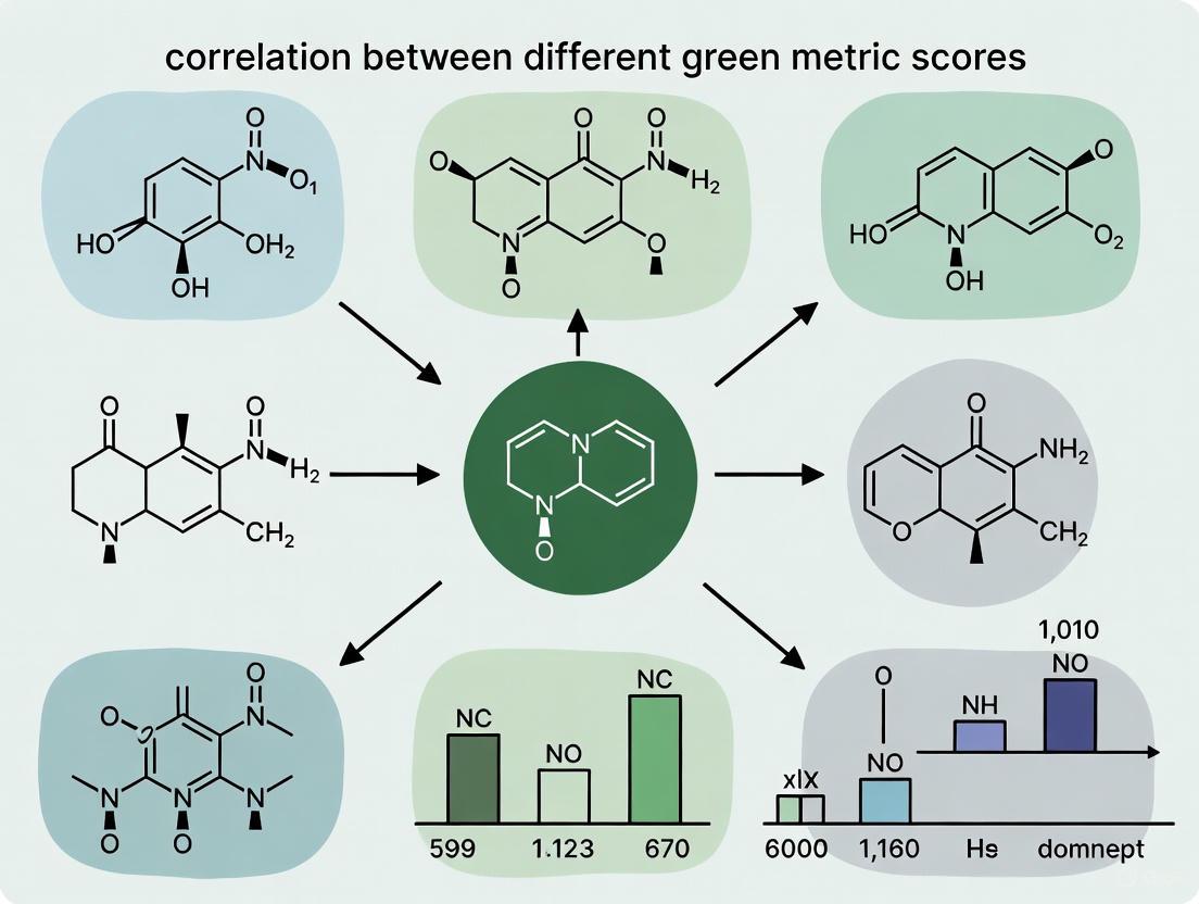 This article provides a comprehensive analysis for researchers and pharmaceutical professionals on the interrelationships between various green chemistry metrics.