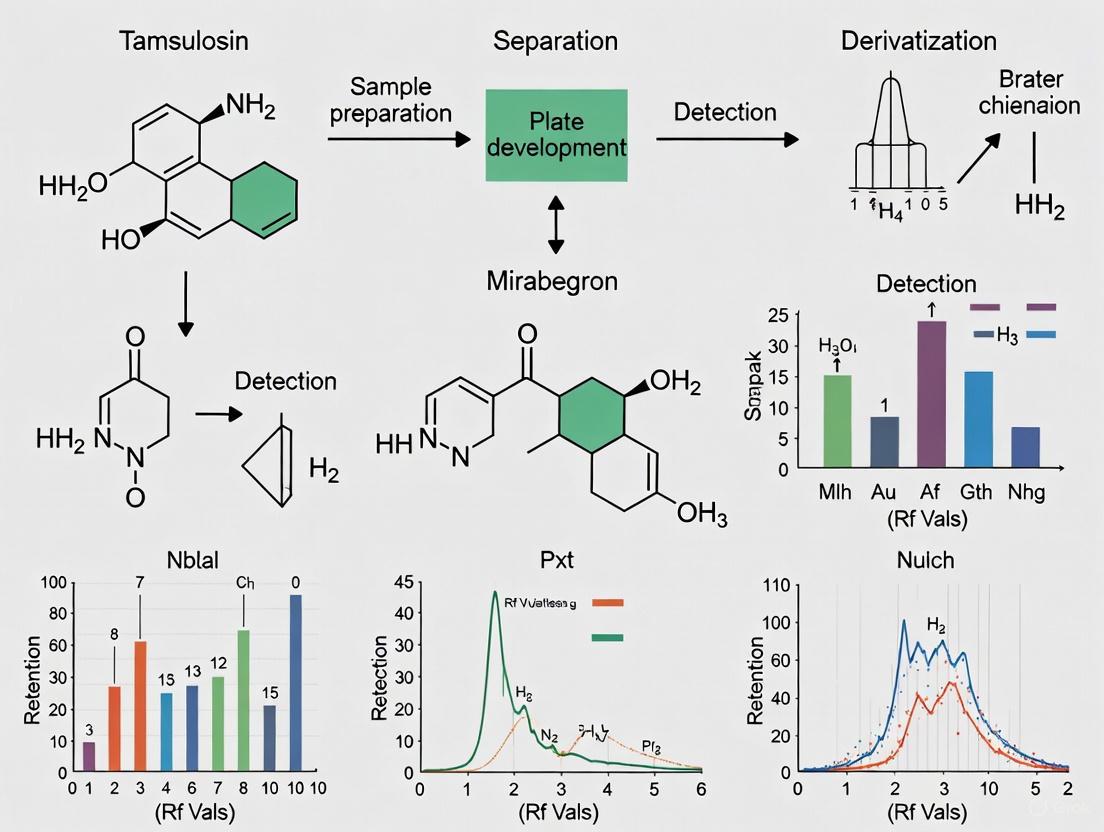 Within the framework of developing a green High-Performance Thin-Layer Chromatography (HPTLC) method for the simultaneous analysis of tamsulosin (TAM) and mirabegron (MIR), it is imperative to contextualize its performance against established analytical techniques. This comparative analysis contrasts the newly developed HPTLC methodology with reported High-Performance Liquid Chromatography (HPLC) and spectrophotometric methods, evaluating them across multiple parameters including analytical performance, greenness, operational efficiency, and practical applicability. The combination of TAM and MIR represents an emerging therapeutic approach for managing overactive bladder symptoms in men with benign prostatic hyperplasia [5] [4]. As pharmaceutical analysis increasingly emphasizes both analytical excellence and environmental responsibility, this comparison provides valuable insights for researchers and drug development professionals seeking optimal analytical strategies for this drug combination.