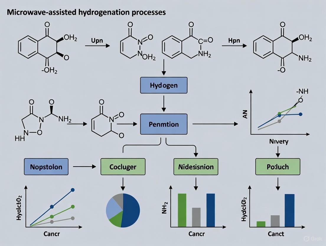 This comprehensive review explores the transformative potential of microwave-assisted hydrogenation processes, a rapidly advancing field at the intersection of green chemistry and synthetic methodology. Tailored for researchers, scientists, and drug development professionals, the article delves into the fundamental mechanisms of microwave irradiation, highlighting its advantages in enhancing reaction rates, selectivity, and energy efficiency. It provides a detailed examination of innovative catalyst design, reactor configurations, and applications across diverse substrates, from fine chemicals to hydrogen energy carriers. The scope further encompasses practical strategies for overcoming operational challenges such as catalyst coking and thermal instability, and presents a rigorous comparative analysis validating the superior performance of microwave heating against conventional methods. By synthesizing foundational knowledge with cutting-edge applications and troubleshooting insights, this article serves as a vital resource for advancing sustainable and efficient synthetic protocols in both academic and industrial settings.